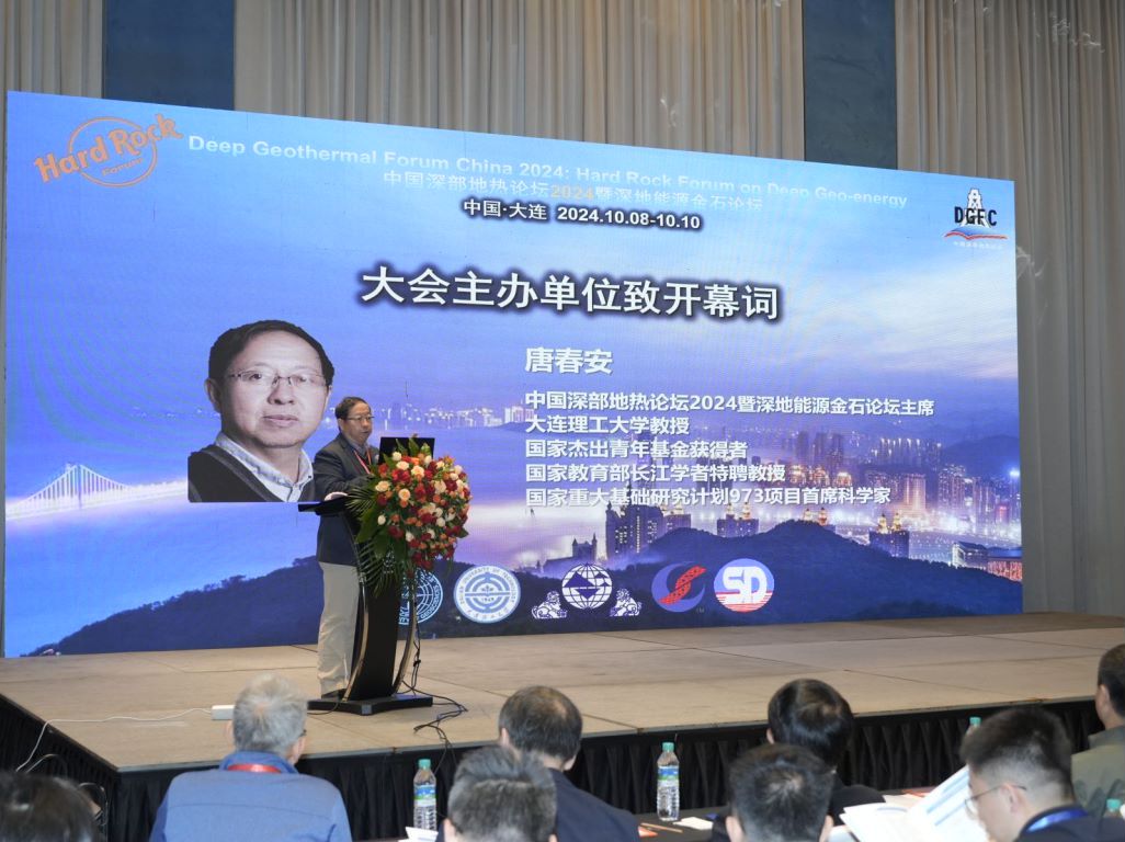 大会开幕式由大连理工大学梁正召教授主持,大连理工大学唐春安教授代表主办单位致辞。唐春安教授介绍,中国深部地热论坛和深地能源金石论坛反映了对于国家能源结构转型需求和国家“双碳”目标的积极响应,论坛汇集了国内外业内资深专家,旨在深入探讨向地球深部进军必须解决的关键科学技术问题。